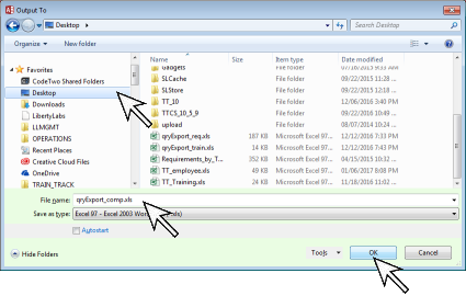 - A box will open to allow you to browse to the location for the export. Select the Location, edit the file Name if desired, and click OK.